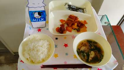酢豚 中華みそスープ 焼きのり ごはん 牛乳