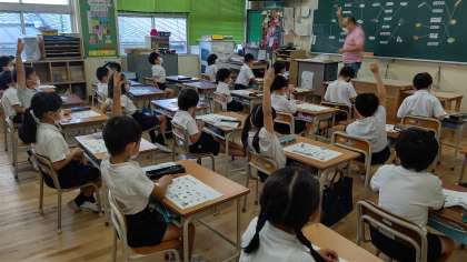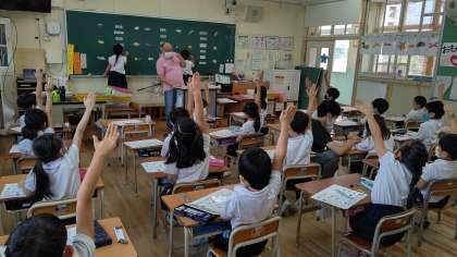 今日は1年生になって初めての食育授業がありました。テーマは『たべものの名前をおぼえよう』です。みんな栄養士の先生の話をよく聞いて、楽しく授業を受けました。