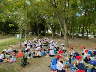 今回の遠足は1,2年生合同でオリエンテーリングを行いました。2年生の子たちは一生懸命1年生の子たちをリードしながらゴールすることができました。2年生のみなさんよくがんばりました。
