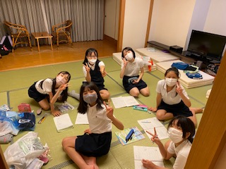 部屋のお風呂に入っています。1人ずつ交代で入っている間、部屋で楽しく寛いでいます