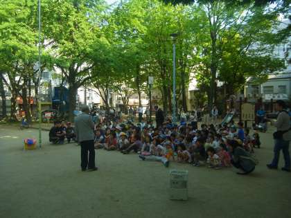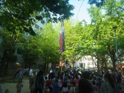 今日(5月1日)、ひまわり公園で、地域の行事「こいのぼりをあげよう会」が行われました。今日はいい天気でしたので、子どもたちがあげたこいのぼりが、青空に映えてとてもきれいでした。たくさんの子どもたちが、集まっていました。