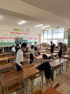 今日は月1回のたてわり清掃の日でした。たてわり班のみんなで協力して、今日も学校をピカピカにしてくれました。
