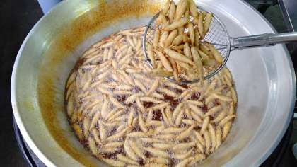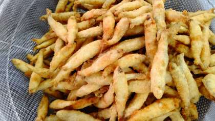 『わかさぎフライ』は、冷凍のまま、170度のなたね油であげています。頭も骨も丸ごと食べれる貴重な小魚です。スープ、カリフラワーとコーンのサラダといっしょに美味しく頂きました。