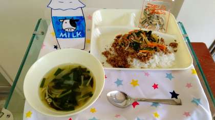 ビビンバ わかめスープ アーモンドフィッシュ 牛乳