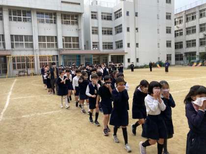 本日2時間目に、火災を想定した2次避難訓練が行われました。1次避難では運動場に集まり人員確認し、その後、2次避難として下福島グランドまで移動しました。そこで再度人員確認し訓練を終えました。子どもたちは、初の試みでしたが、静かにそして速やかに行動することができました。