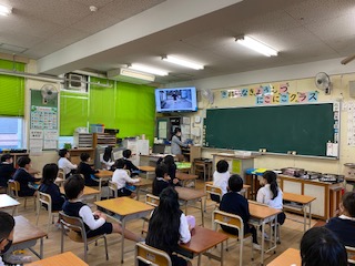 今回の体育集会は、高学年向きのなわとびの技の紹介をビデオで行いました。運動委員会の子達が、「前後二重跳び」「そくしん跳び」「前後交差跳び」「はやぶさ」の跳び方のコツを実演を交えながら教えてくれました。とてもかっこよく跳んでいたので、各教室からは拍手が湧いていました。