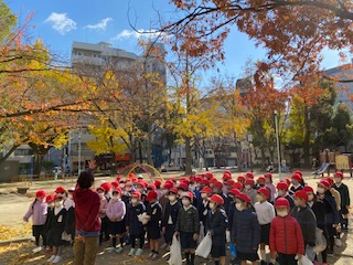 本日3,4時間目に1年生は、福島公園(ひまわり公園)へ「秋の公園たんけん」に行きました。秋の様子を観察しながら、落ち葉たくさん集めました。イチョウが黄色く色づいてとてもきれいでした。いろいろな色・形の葉の中から、自分の作りたい物をイメージして、ぴったりと合うものを選んでいました。