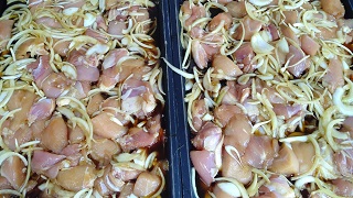 『鶏肉の甘辛焼き』は、鶏肉に調味液で下味をつけ、たまねぎを混ぜ合わせ、焼き物機で焼きます。鶏肉は、ボリュームがあって食べごたえもあり美味しかったです。