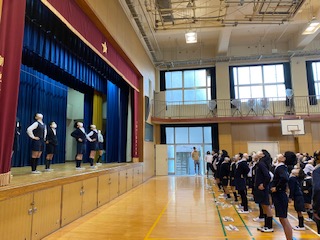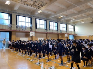 今朝の児童集会は「体でドレミを表現しよう」でした。はじめに各階名のジェスチャーを決めておき、集会委員会の子たちが出したお題に合わせて、体で表現していました。がんばってジェスチャーを覚えて、楽しく活動できました。