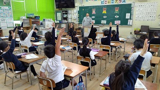 今日のテーマは、『すききらいをしないでたべよう』です。熊の親子のごはんの様子を通して、栄養の勉強を楽しく学ぶ事ができました。