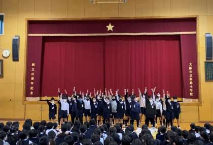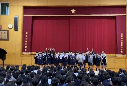 今朝の音楽集会は、3,4年生の発表でした。昨年同様に、ミュージックベルの演奏を披露しました。3年1組は「ふじ山」、2組は「にわとりポルカ」を演奏しました。各クラスとも息がぴったり合っていて、きれいな音色が講堂に響きわたっていました。
