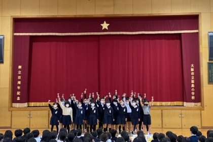 4年1組は「ソーラン節」、2組は「ドラゴンクエスト序曲」、3組は「茶色のこびん」を演奏しました。リズムに合わせた足踏みと共に、迫力のある音色が響いていました。