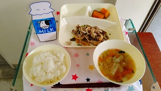 豚肉と干しずいきのみそ煮 うすくず汁 焼きかぼちゃの甘みつかけ ごはん 牛乳