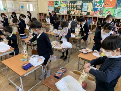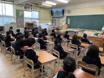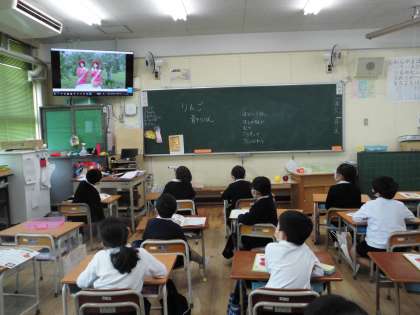 本日はリンゴの授業を行いました。今回はコロナウイルス感染拡大防止の為、出前授業ではなく、映像等を視聴し学習をしました。一つ一つ丁寧に作られていることや、リンゴにはたくさんの種類があることなど、短い時間でたくさん学習しました。大阪青果さんのご厚意で、青森産のリンゴなどのお土産をいただきました。ぜひ、ご家庭で召し上がってください。