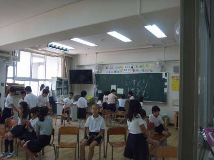 今日(29日)の集会は、1回目のたてわり遊びでした。たてわり遊びは、月1回月末の集会の時間に、たてわり班ごとに集まって遊びます。1回目でしたので、班長が1年生を迎えに行っていました。教室では、ハンカチ落としやイス取りゲームを、外ではドッジボールやしっぽとりをしていました。どの班も、高学年を中心になかよく活動していました。