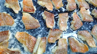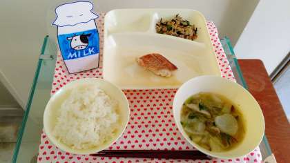 「赤魚のレモンじょうゆがけ」は塩で下味をつけて焼いた赤魚に国産レモンの爽やかな風味をきかせたしょうゆダレをかけています。うすくず汁は寒い時期でも冷めにくいようにでん粉でとろみをつけています。高野どうふのいり煮は、不足しがちな鉄を多く含む高野どうふの粉末を使用しています。今日はチャレンジデーでした。どのクラスも完食をめざしてがんばりました。