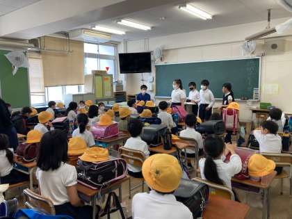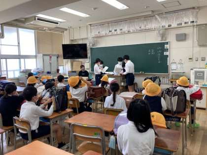 本日6時間目、登校班のグループで集まりました。各班の待ち合わせ場所や時刻の確認、1年生がいる班は、とくに気を付けながら活動の振り返りをしました。