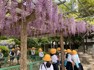 春を見つけに行きました。「わぁ、アゲハチョウだ!」「テントウムシもいるよ。」とみんな嬉しそうでした。たくさん春を見つけた後は、少し遊具で遊んで、大満足で学校に戻ってきました。