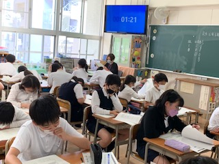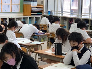 6年生は、3時間目にわくわく問題、4時間目にアンケートを行いました。先週の学力状況調査に引き続き、テスト尽くしですが、みんな真剣な表情で取り組んでいました。