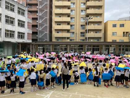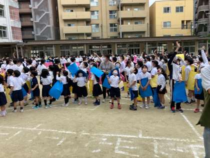 子どもたちは、撮影用の飛行機が現れると大喜び。撮影が終了しても、最後まで見送っていました。出来上がりを楽しみにしておいてください。
