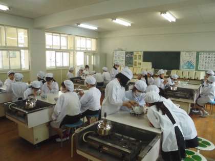 家庭科の学習では初めての調理実習に取り組みました。