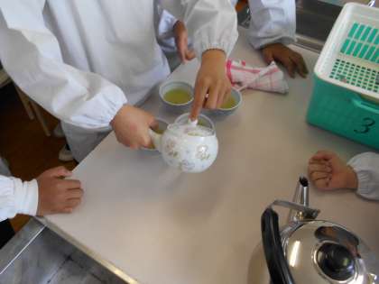 お湯を沸かしてお茶を入れるだけの簡単なものでしたが子どもだちは、「お茶を入れるだけでもこんなに大変なんだ」「自分で入れたお茶おいしい!」と話していました。