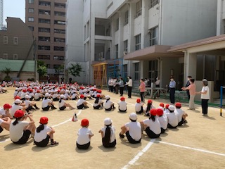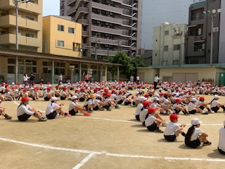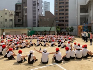 本日、晴天の下、区民音頭を学ぶ会を行いました。一昨年、昨年と中止だったので、久しぶりの開催となりました。寿老会や女性会の方々がたくさん来てくださって、子どもたちに区民音頭を教えてくださいました。