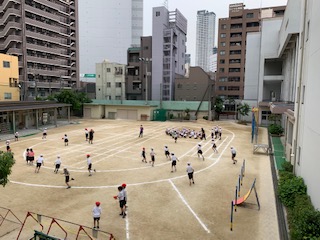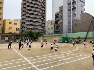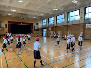 たてわり班で、各教室や講堂、運動場に集合して「しっぽとり」「おにごっこ」「ハンカチ落とし」「じゃんけんれっしゃ」などをして遊びました。今後も、毎月1回行う予定です。