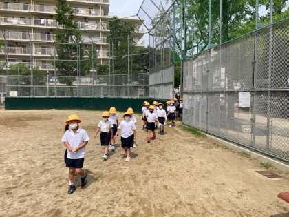 2時間目に火災を想定した避難訓練を行いました。本校の運動場に1次避難し、人員の確認ができた学級から順に、2次避難場所である下福島公園まで避難しました。暑い中でしたが、子どもたちは真剣に訓練に取り組んでいました。