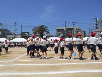 6年生「頂上決戦〜TSUNAHIKI〜」と「みんなで楽しく区民音頭」の様子です。