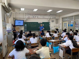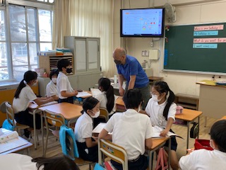 6月から新しいC-NETの先生が、福島小学校で英語を教えてくれることになりました。Patrick先生です。おもに5,6年生の授業を教えてくれます。早速今日からビデオを見ながら楽しく学習していました。Good job!!