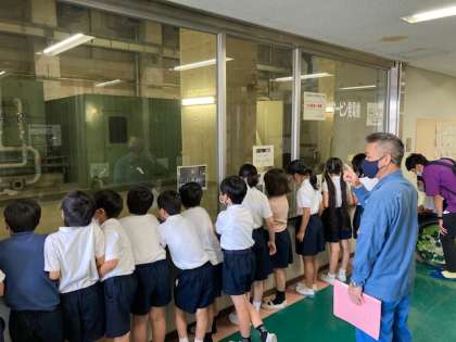 今日は、4−1が西淀工場へ見学に行きました。暑いくらいの晴天でしたが、工場内は、冷房完備で快適に見学できました。子どもたちは、時折歓声をあげながら、熱心に見学していました。