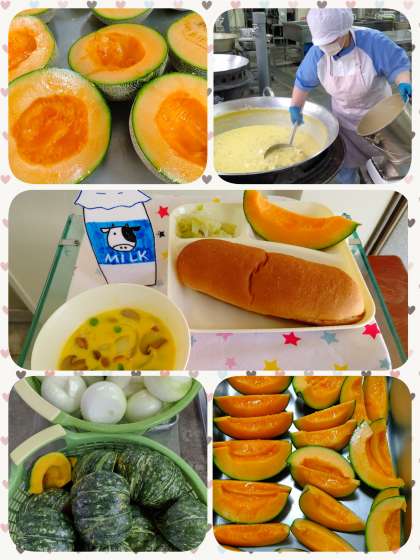 『かぼちゃのクリームシチュー』は、鶏肉、ベーコンを主材に、夏が旬の生のかぼちゃを使用しています。『キャベツのゆずドレッシング』は、蒸したキャベツを、ゆず風味のドレッシングであえています。『クインシーメロン』は、年1回登場します。甘くて美味しかったです。