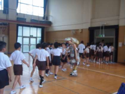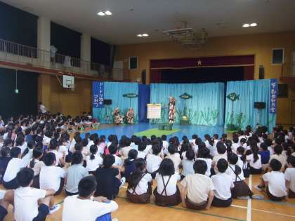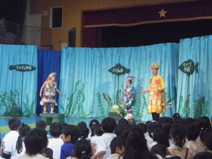 終了後は、講堂の出口で魚たち(劇団の方々)とハイタッチしてお別れです。