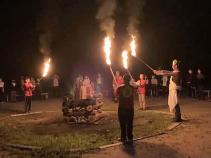天候にも恵まれ、無事キャンプファイヤーを行うことができました。火の神も登場しました。たくさんのゲームもして、楽しいキャンプファイヤーとなりました。