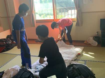 3日間お世話になった宿舎の清掃をしています。感謝の気持ちを込め、“来た時よりも美しく”清掃しました。いよいよ帰る時が近づいてきて、少し寂しさを感じている児童もいました。