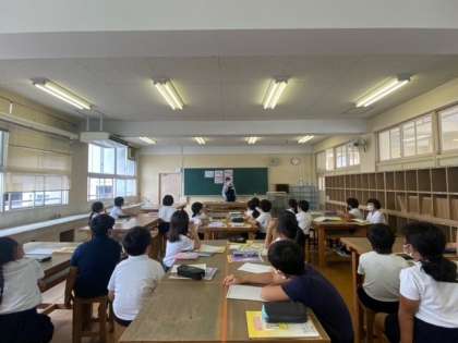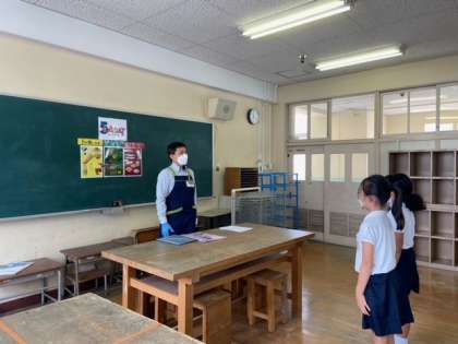 スーパーマーケットのライフの方に来ていただきました。質問に答えてくださったり、食品ロスや食べ物のはたらきについて学習しました。後日にお土産がもらえると知って、大喜びでした。