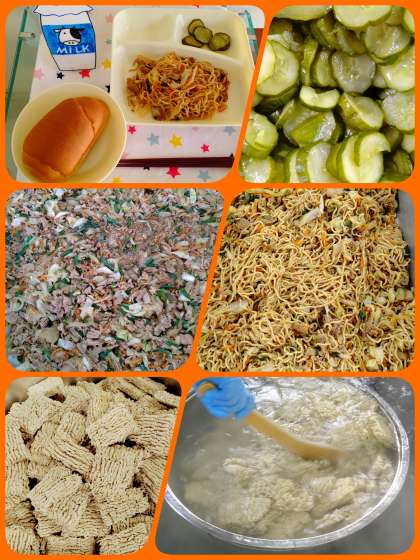 『オイスターソース焼きそば』は、豚肉を主材にテンメンジャン、オイスターソース等で味付けをした中華風の焼きそばです。『きゅうりのピリ辛あえ』は、蒸したきゅうりに、ラー油の辛味をすこしきかせたタレをかけ、あえています。暑い日でも食べやすい献立で美味しかったです。