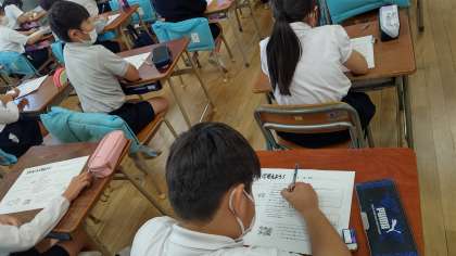 今日のテーマは『おやつについて考えよう』です。健康を考えたおやつをとる時間や、望しいおやつのとり方を勉強しました。