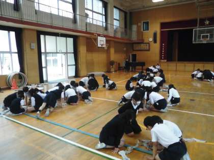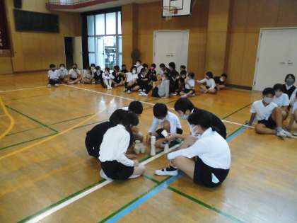 「スポーツの秋」ということで、本日5年生は室内オリンピックを行いました。林間学習の活動班に分かれて、5つの競技で競いました。久しぶりに5年生全体で活動できるとあって、みんなで協力して、楽しく元気に取り組むことができました。