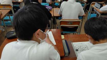 今日のテーマは『栄養バランスのよい食事を考えよう』です。主食、主菜、副菜の組み合わせを考え、栄養バランスのとれた食事になるように勉強しました。