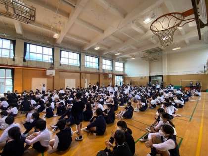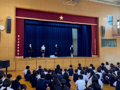 今朝の児童集会は「わたしはだれでしょう?」クイズでした。集会委員会の子たちのヒントを聞きながら答えを考えました。最後には校長先生に関するクイズでしたが、ほとんどの子たちが正解していました。