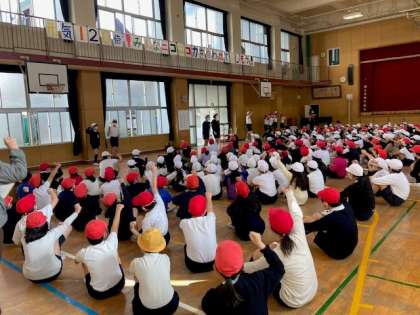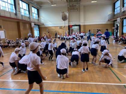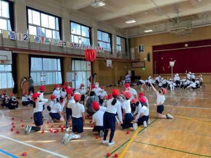 本日2,3時間目、スポーツ大会を行いました。たてわり班対抗の玉入れ大会をしました。みんなが楽しめるようにルールが工夫されていました。紅白玉のほかにカラーボールが入っていました。カラーボールの得点はゲーム終了までわかりません。入れるか入れないか、得点発表の時を含め、とても盛りあがっていました。たてわり班で協力し、みんなで楽しむことができていました。明日の結果発表が楽しみです。