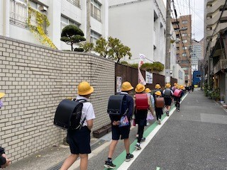 地域ごとに、登校班での2学期のふり返りをしました。地域に危険な場所がないかも確認しました。各班から出た反省を生かして、これからも、きちんと並んで登校しましょう。