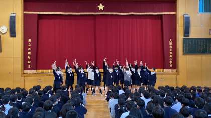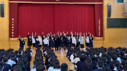 4年1組は「ドラゴンクエスト序曲」、2組は「ソーラン節」を演奏しました。伴奏はありませんでしたが、全員の息がぴったり合って、リズムよく演奏することができました。