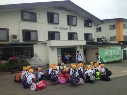 宿舎到着。しかし、しかし、あんなにいい天気だったのに、小雨模様。