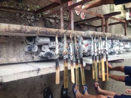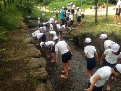 魚つかみ、本当に冷たい山の水。水の中に入っていると足がジンジンするぐらいの温度。なんとか全員が魚1匹を確保できました!あーおいしかった!!