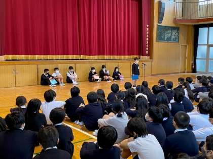 昨日(22日)、2学期の終業式を行いました。最初に表彰式を行いました。私のスピーチでは、2,4,6年のクラス代表の児童が、2学期にがんばったことや冬休みの楽しい予定、3学期のめあてなどを発表しました。また、校長先生からは、冬休みに心がけてほしいことについてお話がありました。最後に久しぶりに校歌を歌いました。子どもたちの素敵な声が響き渡っていました。