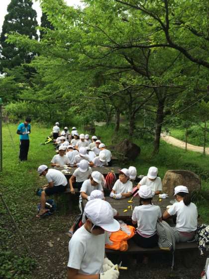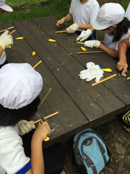 真剣な表情で説明を聞き、自分専用の箸を作ることに夢中です!