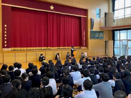 本日、3学期の始業式を行いました。児童のスピーチでは、冬休みの思い出や3学期の目標を1,3,5年生の学級代表の子が発表しました。約2週間の休み中、それぞれに楽しく貴重な体験ができたようです。どの子も休み中に練習し、上手に発表していました。校歌も元気よく歌うことができました。